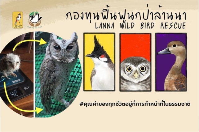 เงินบริจาคของคุณจะสนับสนุนค่าใช้จ่ายที่จำเป็น ให้กับหน่วยฟื้นฟูนกป่าล้านนาในการดูแลรักษานกป่าที่บาดเจ็บและตกรังกลับคืนสู่ธรรมชาติ 200 ตัว