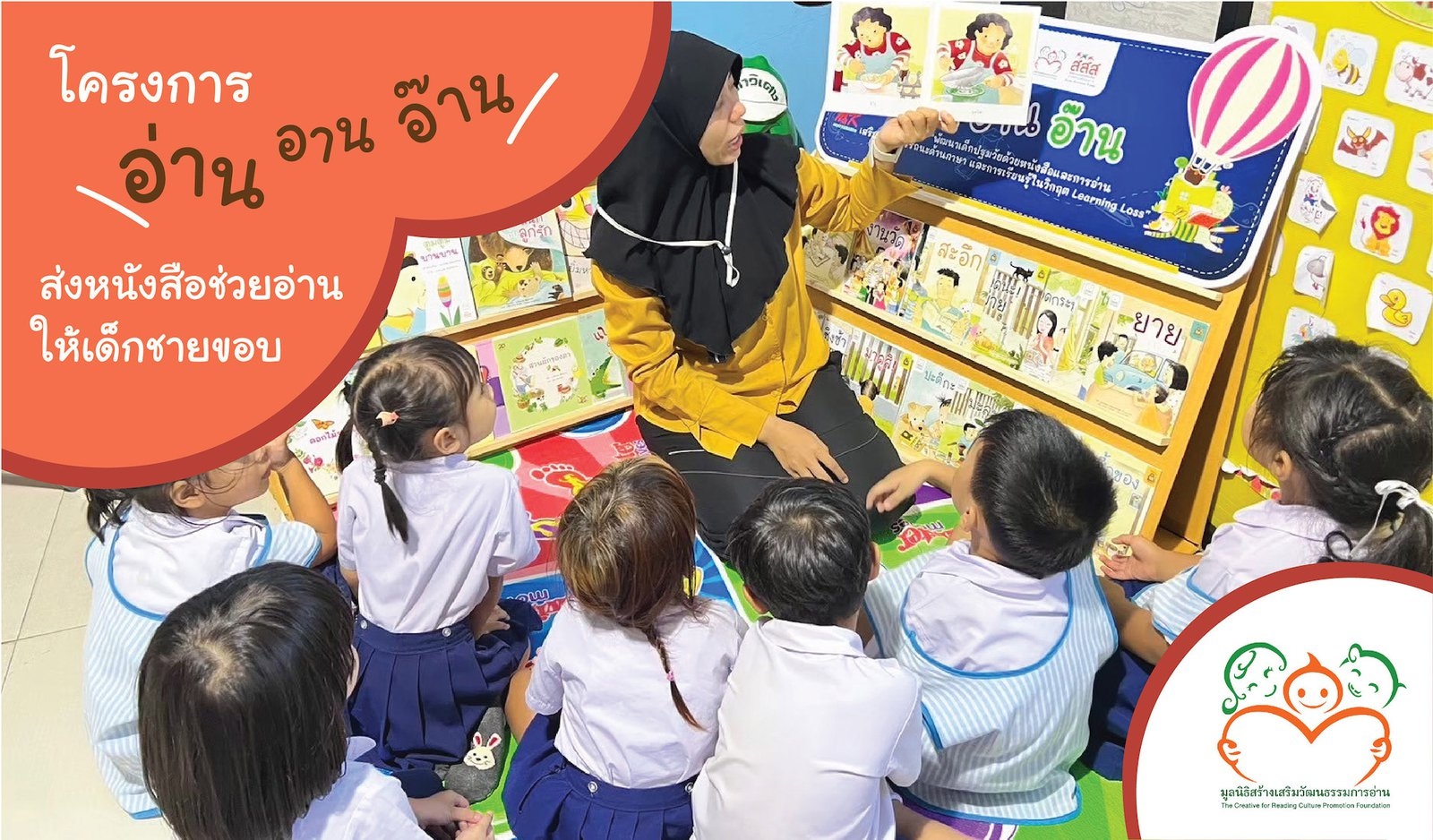 Donations for the project will ซื้อหนังสือฝึกอ่านตามระดับพัฒนาการทางภาษา to เด็กนักเรียนโรงเรียนท้องถิ่นทุรกันดาร จำนวน 312 ชุด