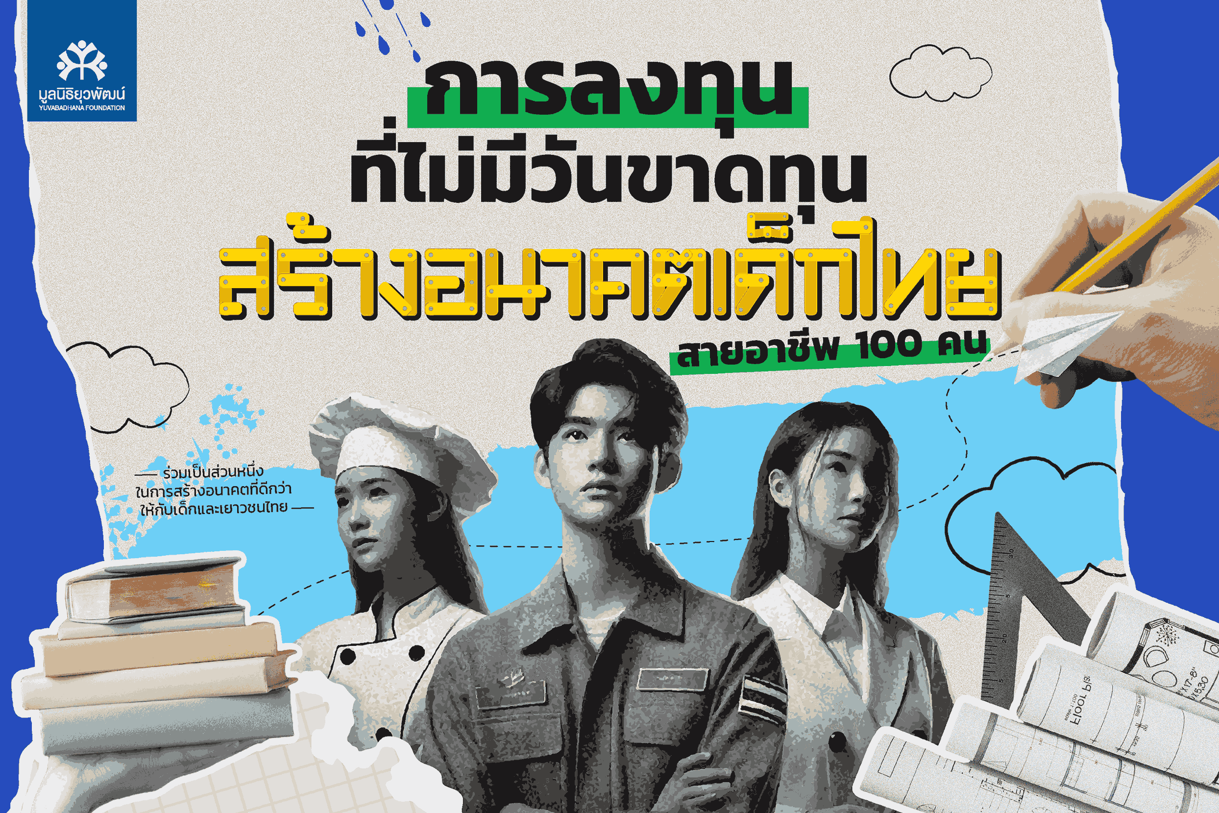 เงินบริจาคของคุณจะมอบทุนการศึกษา ให้กับนักเรียนทุนสายอาชีพ 100 คน