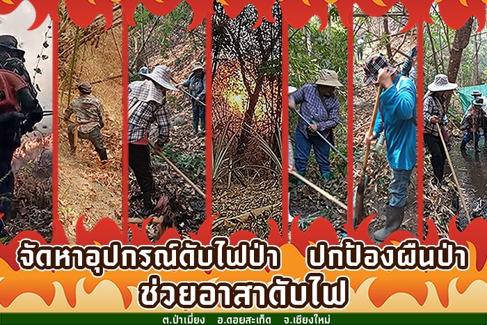 เงินบริจาคของคุณจะจัดซื้ออุปกรณ์ดับไฟป่า อุปกรณ์จำเป็นอื่นๆ และค่าเบี้ยเลี้ยงทีมอาสาดับไฟป่า ให้กับต.ป่าเมี่ยง อ.ดอยสะเก็ด จ.เชียงใหม่ 6 หมู่บ้าน