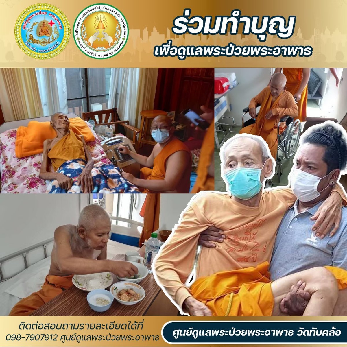 เงินบริจาคของคุณจะนำไปเป็นค่าใช้จ่ายเช่นค่าอาหาร คนดูแล การไปโรงพยาบาล ให้กับพระภิกษุสงฆ์ที่อาพาธ ป่วยติดเตียง ติดเตียงระยะท้าย 13 รูป