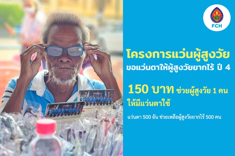 เงินบริจาคของคุณจะมอบแว่นตา ให้กับผู้สูงวัยยากไร้ที่ไม่มีแว่นตาใช้ แว่นตาเสื่อมสภาพ จำนวน 500 คน