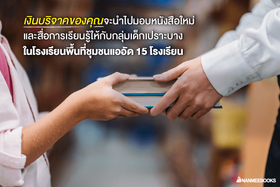 เงินบริจาคของคุณจะนำไปมอบหนังสือใหม่และสื่อการเรียนรู้ ให้กับกลุ่มเด็กเปราะบางในโรงเรียนพื้นที่ชุมชนแออัด 15 โรงเรียน
